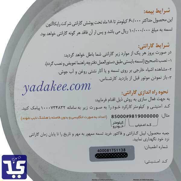 کیفیت این تسمه باعث تضمین تا 60 هزار کیلومتر / 2 سال کارکرد، توسط شرکت رایکاآلتون شده است.
